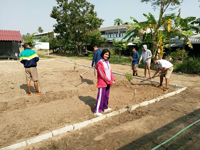 การทำแปลงเกษตรปลูกผักสวนครัวและแปลงผักแบบกางมุ้ง
