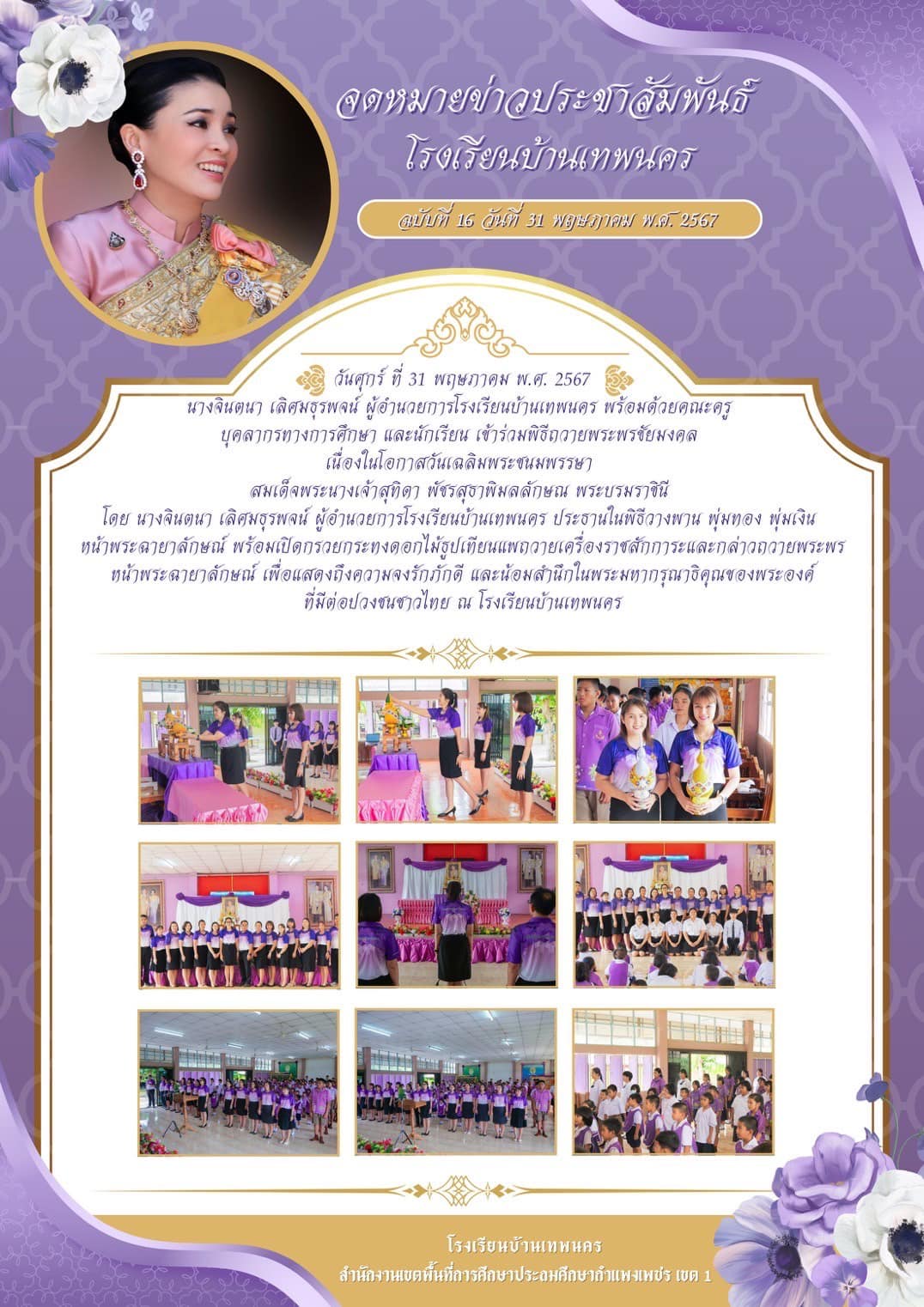 วันศุกร์ที่ 31 พฤษภาคม 2567 โรงเรียนบ้านเทพนคร