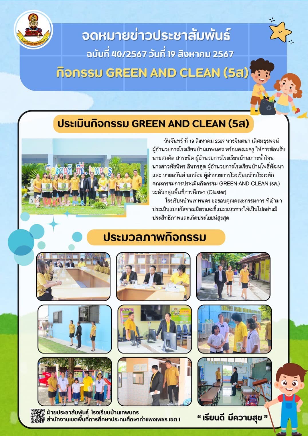 การประเมินกิจกรรม GREEN AND CLEAN (5ส.) ระดับกลุ่มพื้นที่การศึกษา (Cluster)ของโรงเรียนบ้านเทพนคร