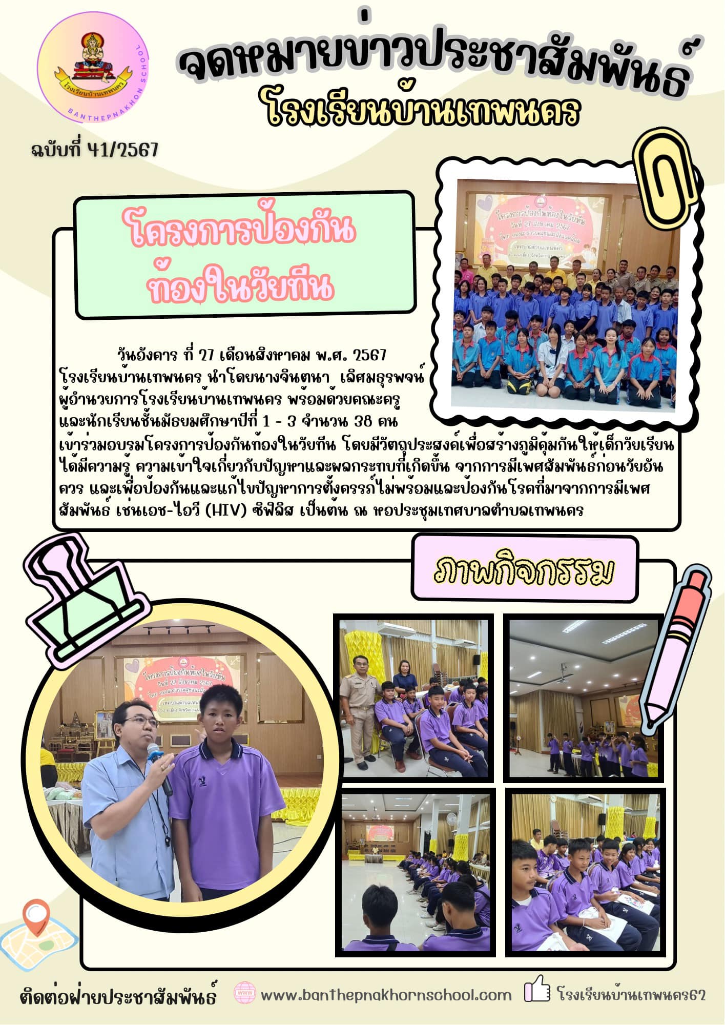 นักเรียนโรงเรียนบ้านเทพนครเข้าร่วมอบรมโครงการป้องกันท้องในวัยทีน