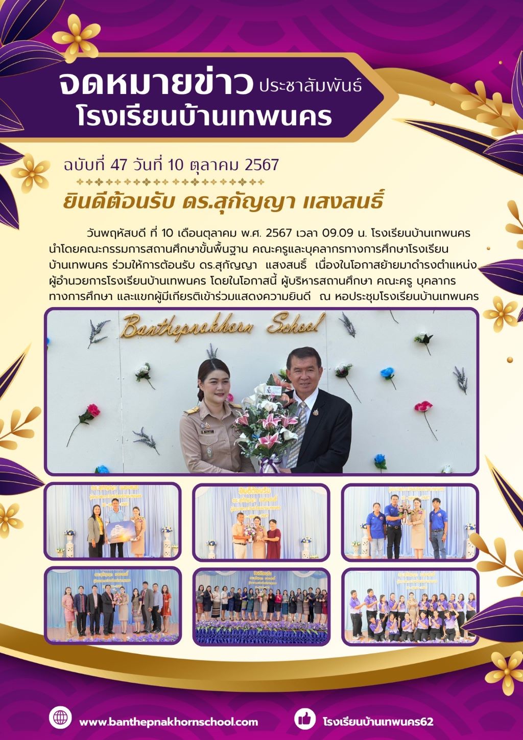 ต้อนรับ ดร.สุกัญญา แสงสนธิ์ เนื่องในโอกาสย้ายมาดำรงตำแหน่งผู้อำนวยการโรงเรียนบ้านเทพนคร