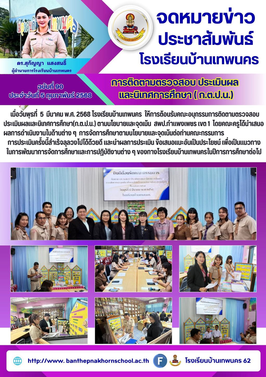 การติดตามตรวจสอบ ประเมินผลและนิเทศการศึกษา(ก.ต.ป.น.) ตามนโยบายและจุดเน้น สพป.กำแพงเพชร เขต 1