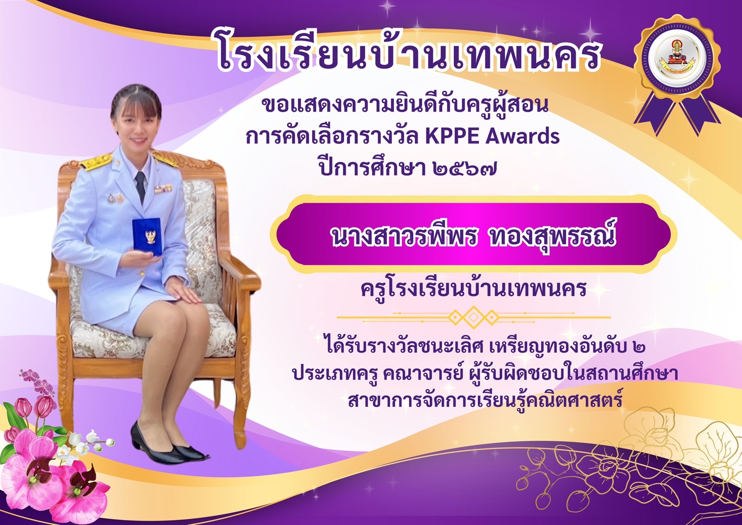 โรงเรียนบ้านเทพนคร ขอแสดงความยินดีกับข้าราชการครูและบุคลากรทางการศึกษาที่ได้ส่งผลงานเข้าร่วมการประกวดรางวัล KPPE Awards ปีการศึกษา 2567 ซึ่งจัดขึ้นโดย สำนักงานศึกษาธิการจังหวัดกำแพงเพชร การประกวดรางวัลดังกล่าวได้รับการสนับสนุนจากท่านผู้อำนวยการ ให้คณะครูแ