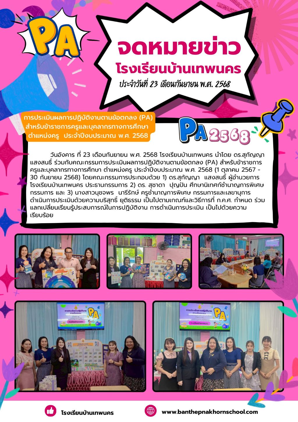 โรงเรียนบ้านเทพนคร รับการประเมินผลการปฏิบัติงานตามข้อตกลง (PA) สำหรับข้าราชการครูและบุคลากรทางการศึกษา ตำแหน่งครู ประจำปีงบประมาณ พ.ศ. 2568