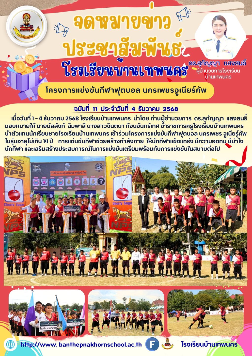 ร่วมโครงการแข่งขันกีฬาฟุตบอล นครเพชร จูเนีียร์คัพ ในรุ่นอายุไม่เกิน 14 ปี