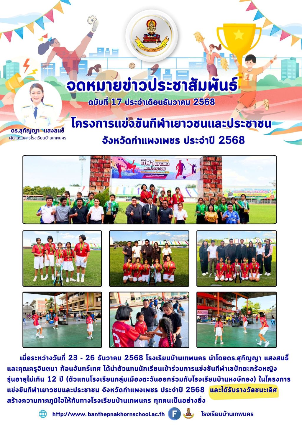 ร่วมการแข่งขันกีฬาเซปักตะกร้อหญิง รุ่นอายุไม่เกิน 12 ปี (ตัวแทนโรงเรียนกลุ่มเมืองตะวันออกร่วมกับโรงเรียนบ้านหงษ์ทอง)