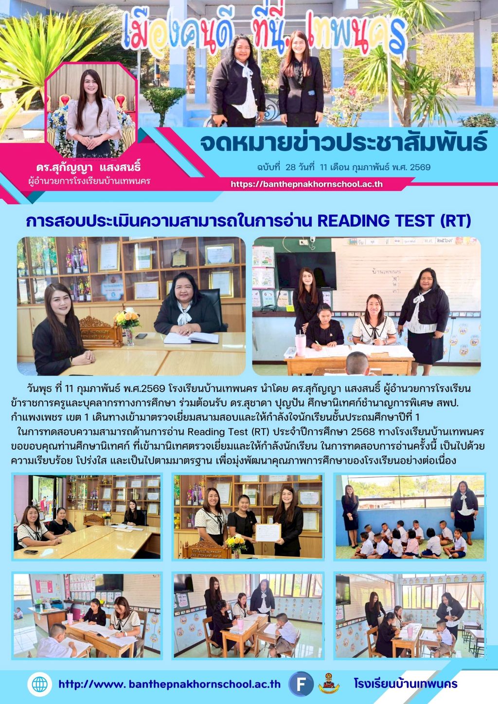 การตรวจเยี่ยมสนามสอบและให้กำลังใจนักเรียนชั้นประถมศึกษาปีที่ 1 ในการทดสอบความสามารถด้านการอ่าน Reading Test (RT) ประจำปีการศึกษา 2568