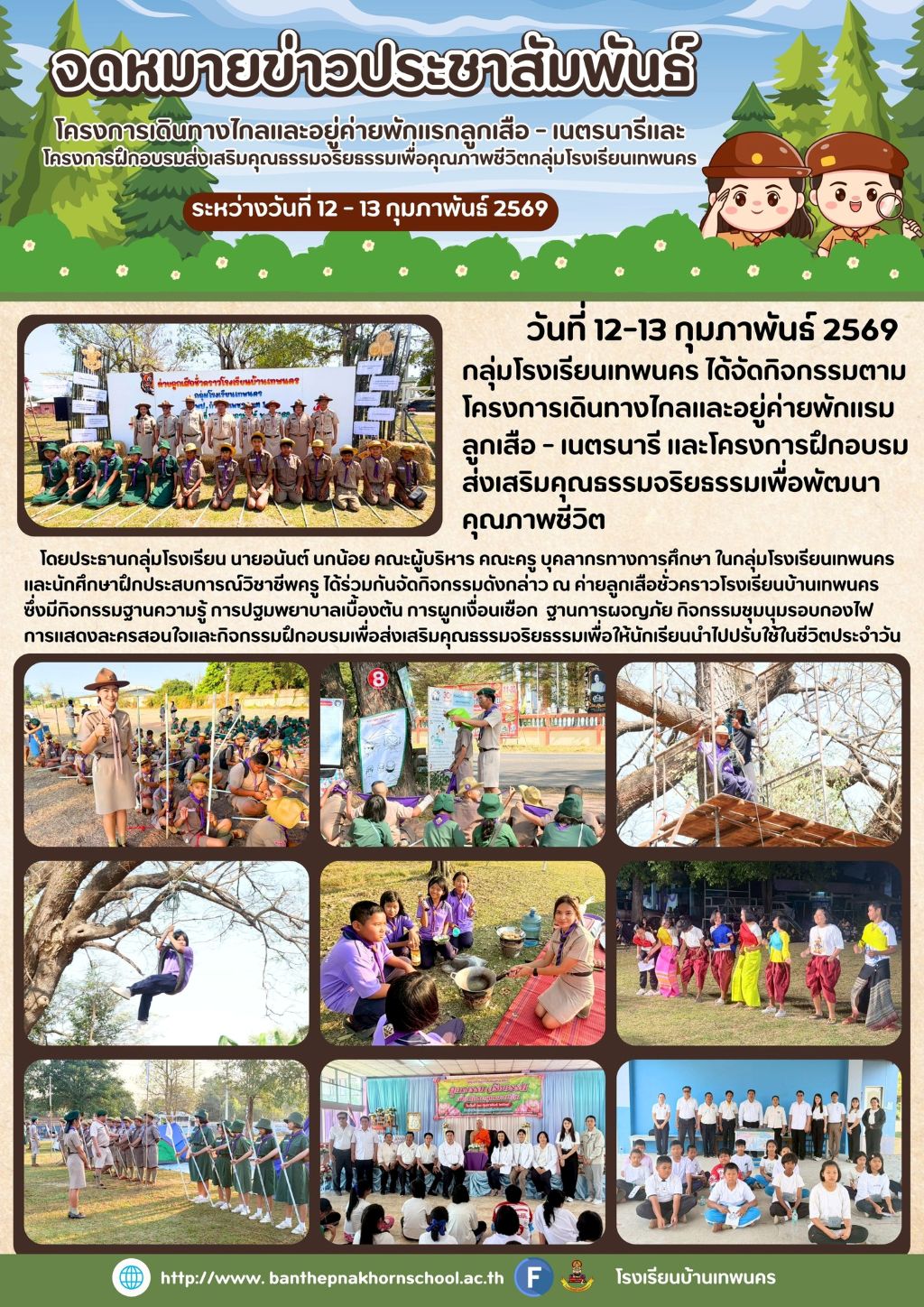 กิจกรรมตามโครงการเดินทางไกลและอยู่ค่ายพักแรมลูกเสือ - เนตรนารี และโครงการฝึกอบรมส่งเสริมคุณธรรมจริยธรรมเพื่อพัฒนาคุณภาพชีวิต