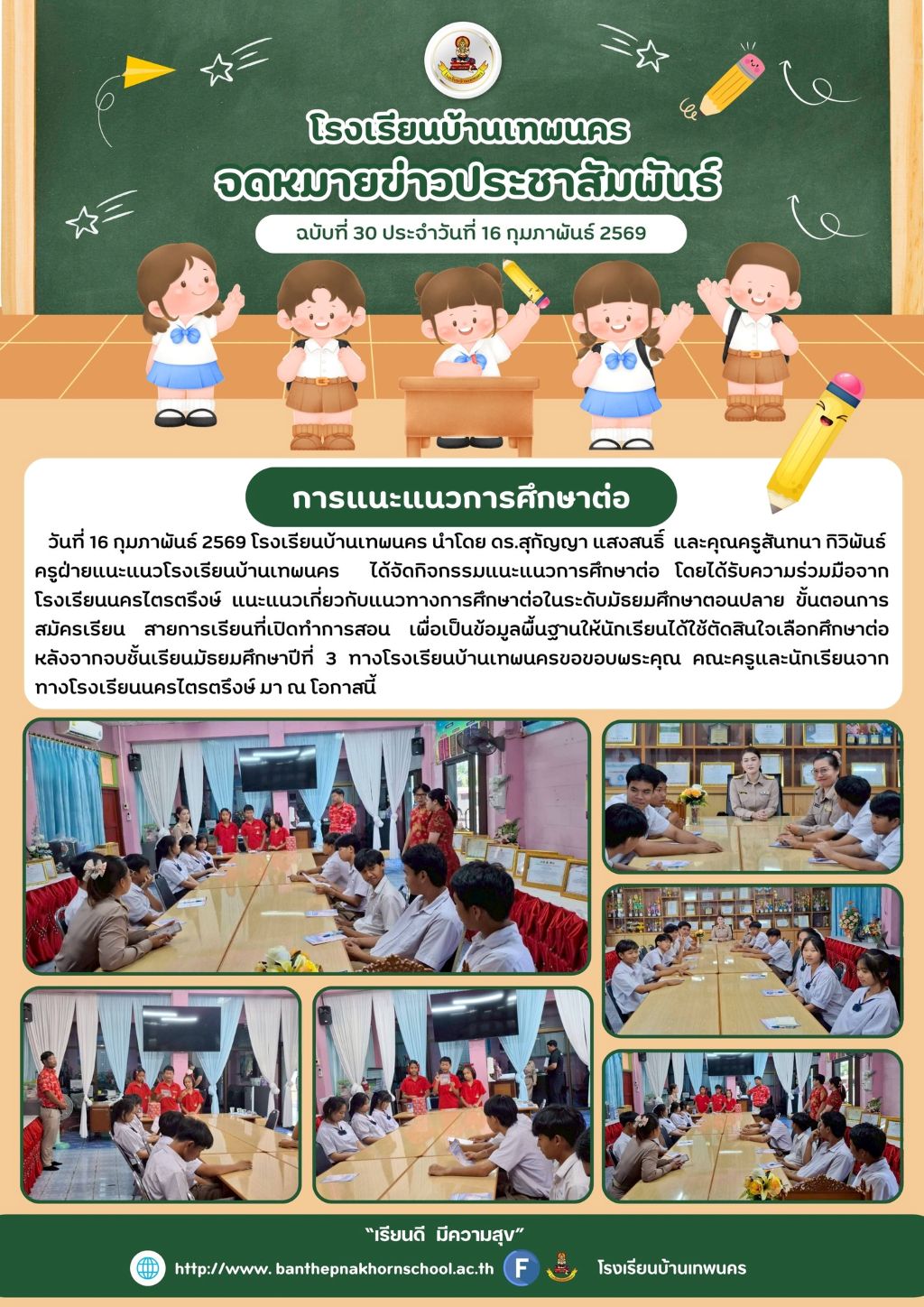 กิจกรรมแนะแนวการศึกษาต่อ โดยได้รับความร่วมมือจากโรงเรียนนครไตรตรึงษ์