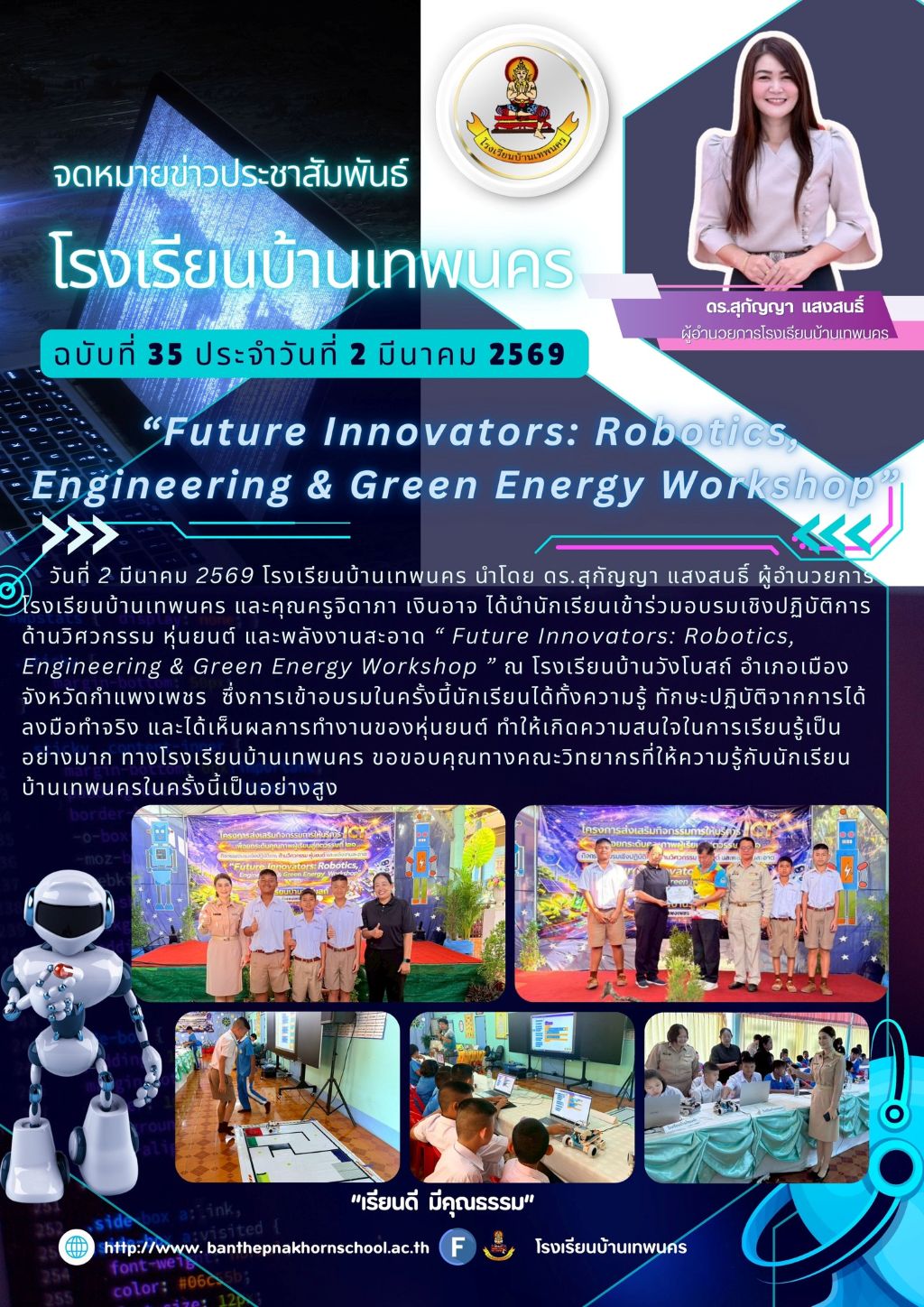 การอบรมเชิงปฏิบัติการด้านวิศวกรรม หุ่นยนต์ และพลังงานสะอาด “ Future Innovators: Robotics,Engineering & Green Energy Workshop ” ณ โรงเรียนบ้านวังโบสถ์