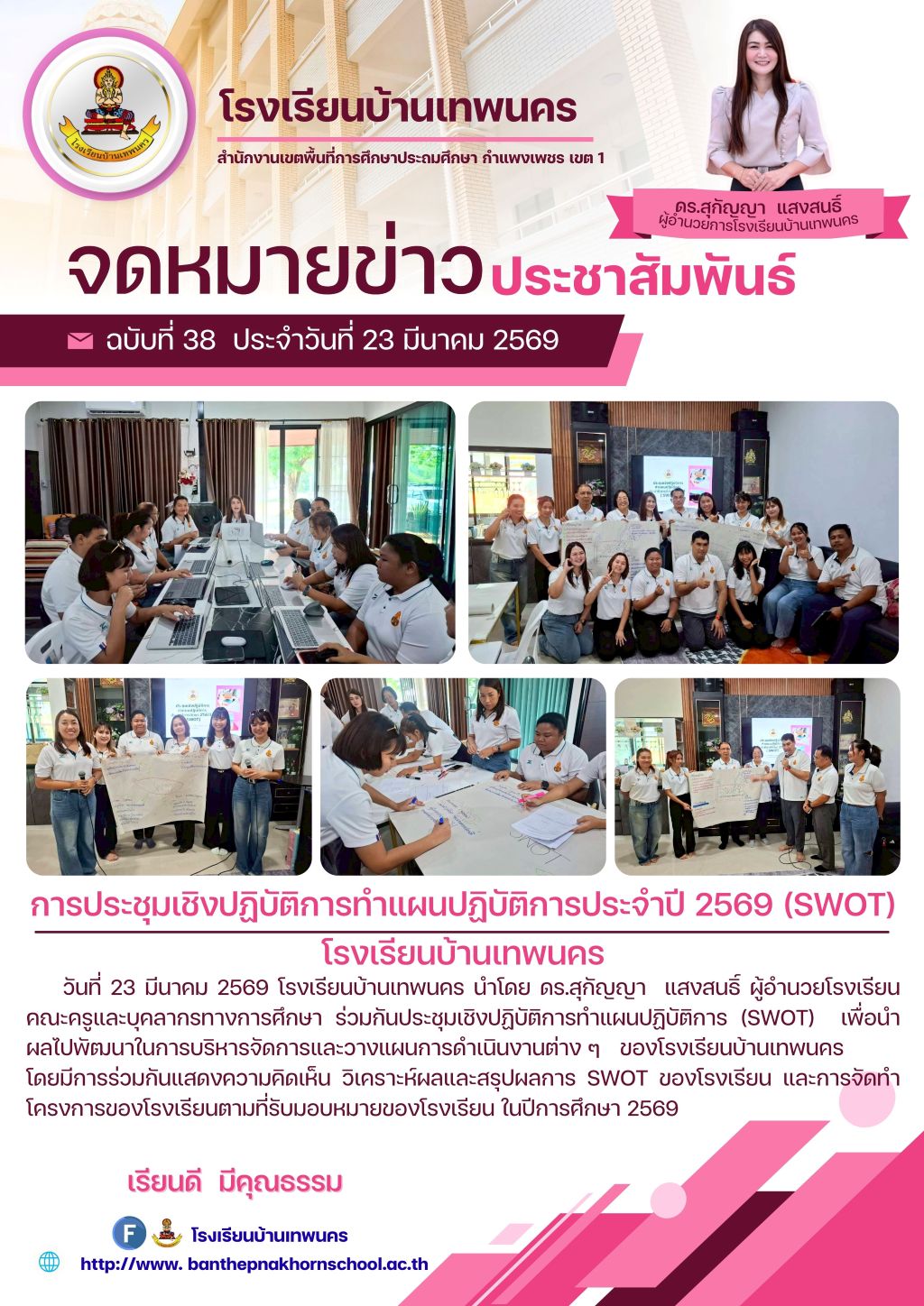 การประชุมเชิงปฏิบัติการทำแผนปฏิบัติการ (SWOT)ของโรงเรียนบ้านเทพนคร