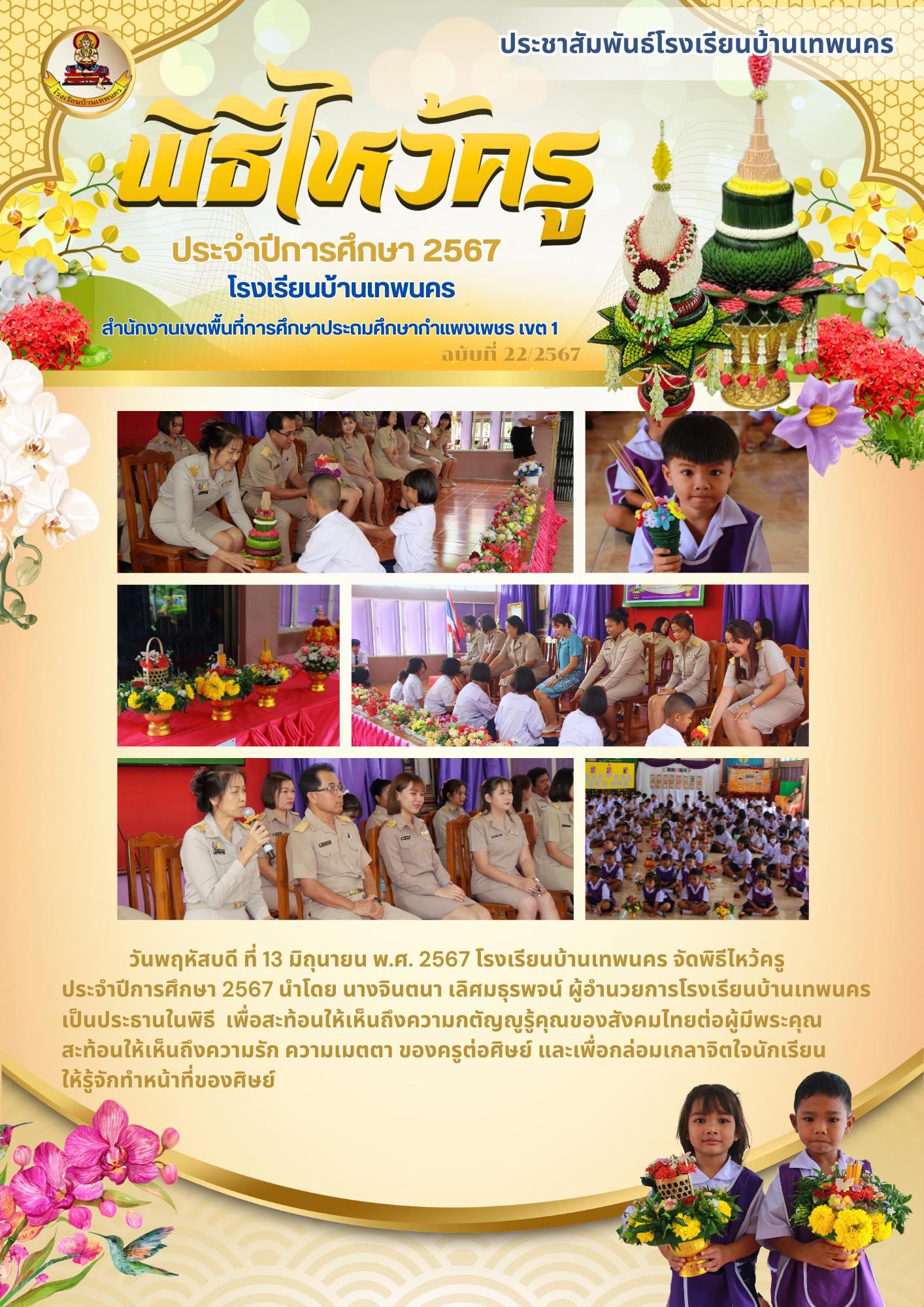วันพฤหัสบดี ที่ 13 มิถุนายน พ.ศ. 2567 โรงเรียนบ้านเทพนคร จัดพิธีไหว้ครู ประจำปีการศึกษา 2567