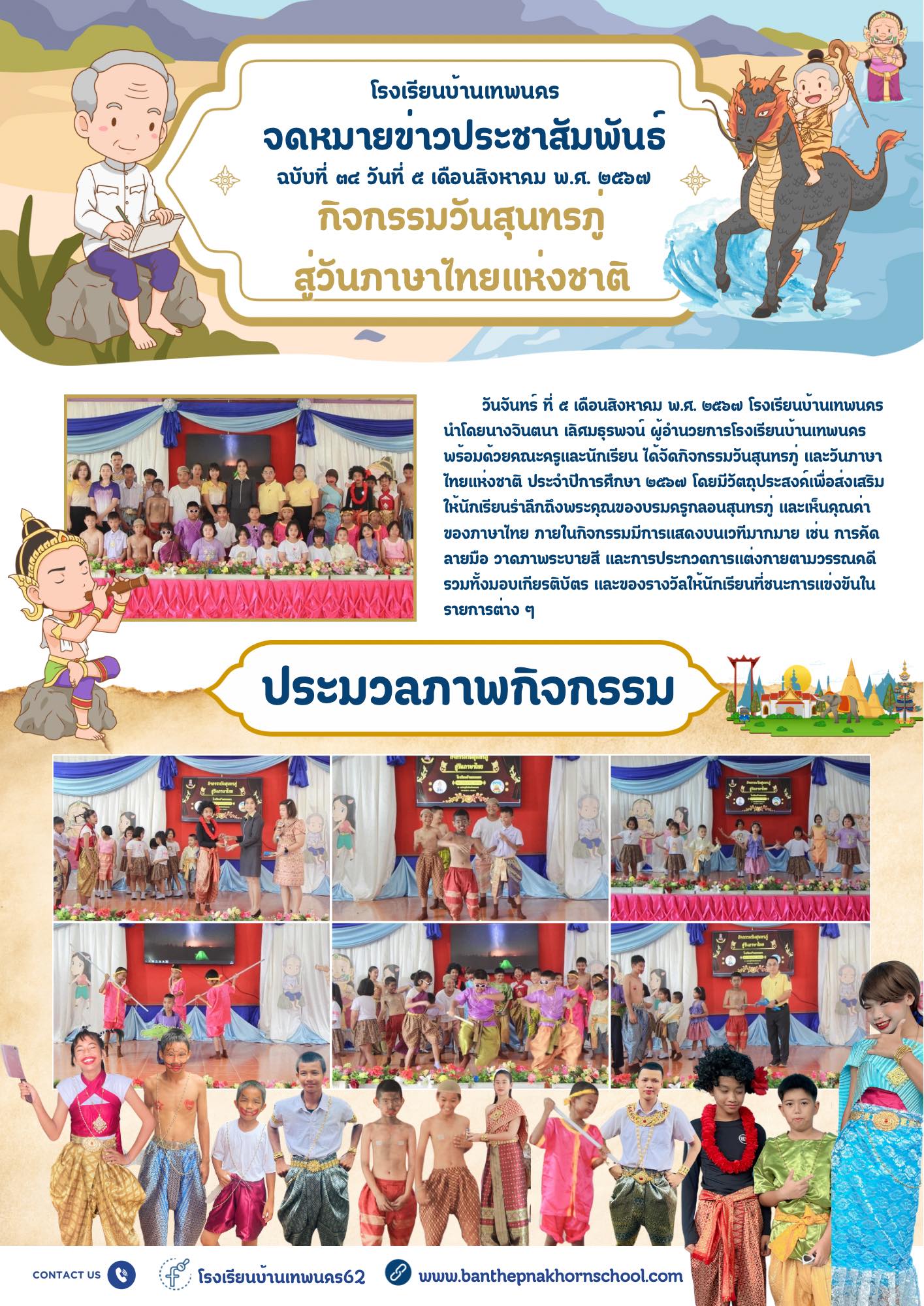 โรงเรียนบ้านเทพนครได้จัดกิจกรรมวันสุนทรภู่ และวันภาษาไทยแห่งชาติ ประจำปีการศึกษา ๒๕๖๗